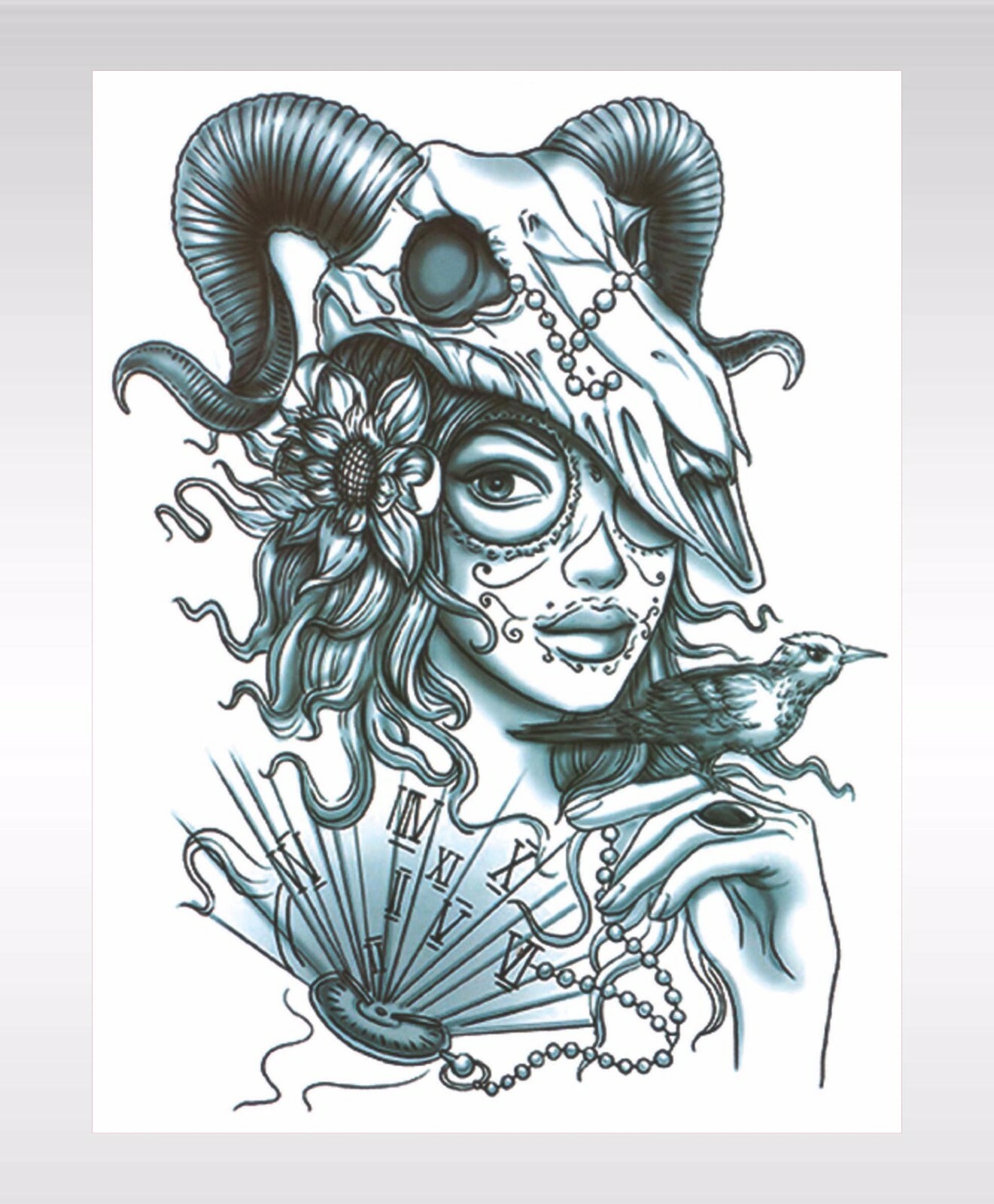 Body Sticker Ram Skull Sexy Lady Large 8 25 034 Temporary Arm Tattoo Ebay